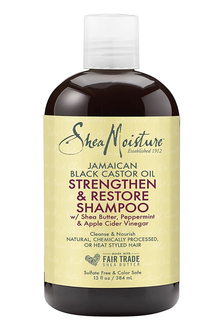 Shea Moisture Jamaican Black Castor Oil Strengthen & Restore Shampoo is a sulfate-free, clarifying shampoo that removes buildup while infusing hair with nourishing moisture.